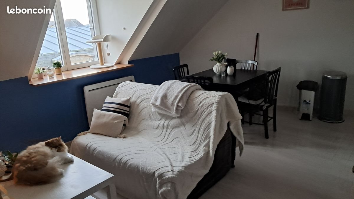 Appartement meublé situé au dernier étage au centre ville dans un immeuble calme exposé sud et mansardé. Il se compose d'une pièce de vie avec cuisine équipée, frigo, congélateur. Une chambre avec lit de 140, 2 tables de chevet, armoire, un dressing ou bureau. Une Sdb avec lave linge. Interphone, cave.