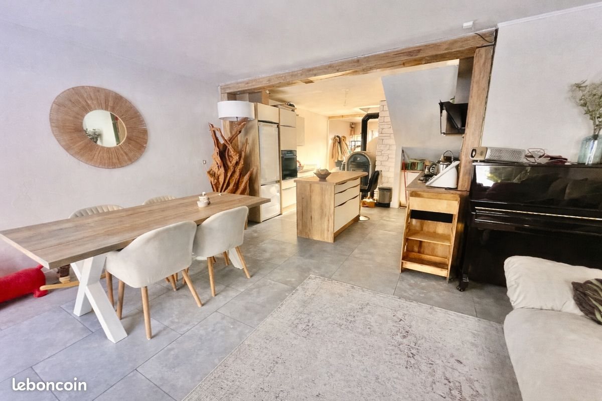 Maison de 4 pièces - 108m² Cette maison de 2 étages comprend une entrée avec rangements, buanderie, 3 chambres avec chacune un dressing et 1 salle de bain, 2 wc. La cuisine est neuve, entièrement équipée et ouverte sur le séjour. Chauffage au gaz avec citerne individuelle + poêle à bois. 2 places de parking, carport pour une voiture et un deux-roues. Jardin de 2300m3 avec atelier de 20m2. Premier contact par téléphone et visite possible.