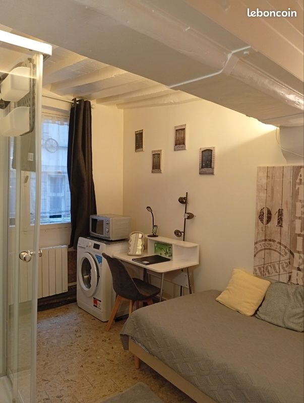 Studette meublée wc séparé,douche neuve, kitchenette équipée d'un micro onde, plaque induction, frigo congélateur, bouilloire et Nespresso. Machine à laver sèche linge neuve. Bureau avec literie neuve. Armoire penderie et rangement mezzanine. Vaisselle et linge de lit fournis. Proche des facultés et périmètre Henri Iv . Commerces et transports metro Maubert mutualité et Rer C et B Notre Dame.