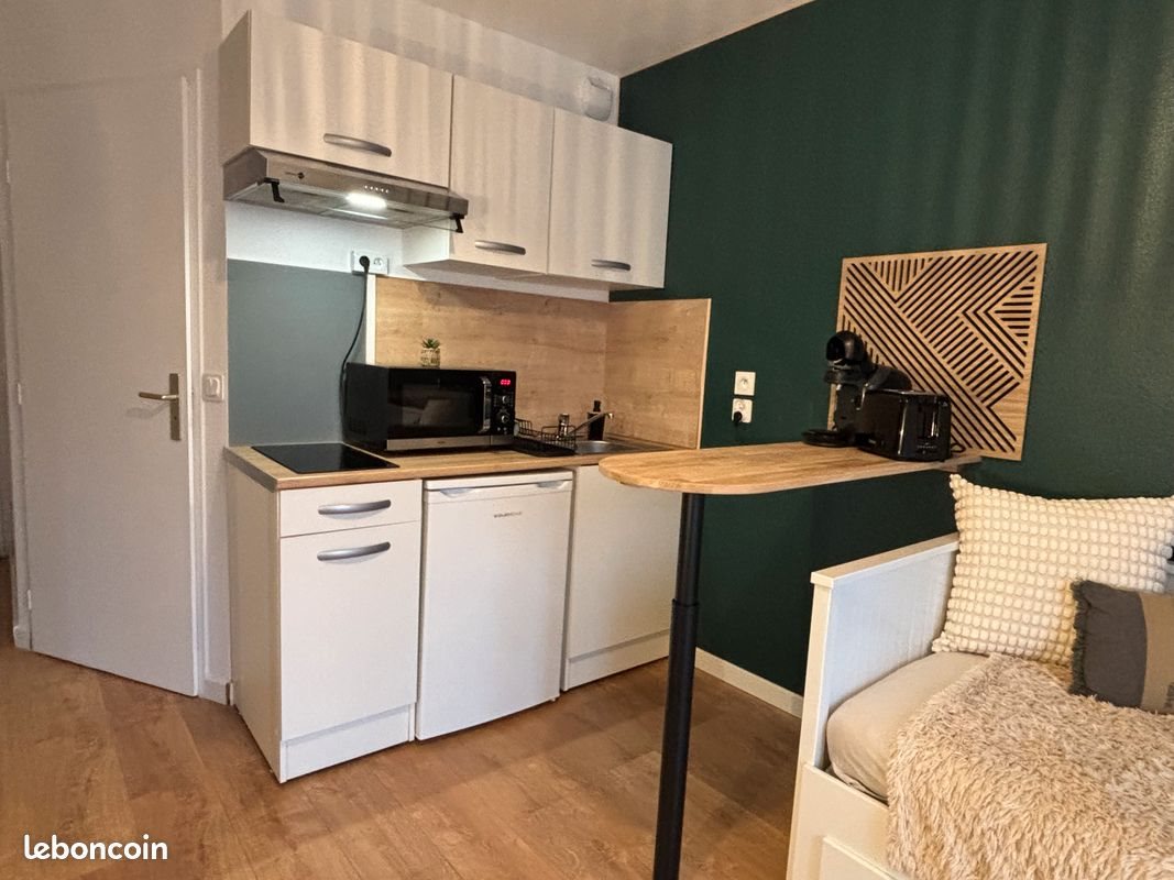 Studio meublé 20 M2 situé sur Darnetal ,dans une résidence sécurisée, tout proche de l'école nationale d'architecture et école d'infirmière, Chu ,bus, métro et commerces. Accès rapide au centre ville ainsi qu'à la gare de Rouen. Ideal pour les étudiants! Entièrement meublé ,rénové et moderne ,situé au premier étage d'une résidence sécurisée et exposé plein sud . Une place de parking privé en sous-sol . Studio équipé: Entrée avec meuble à chaussures, miroir Cuisine ,micro onde ,plaque, hotte, cafetière Tassimo, grille pain, aspirateur balai ,frigo. Espace bureau, Tv, lampe Lit gigogne 1ou 2 personnes, armoire 3 portes et commode Sdb avec douche ,machine à laver ,colonne suspendue avec quelques rangement. Loyer:450€ Charges:50€ Caution:1000€ Frais de bail:250€ N'hésitez pas à me pour plus de renseignements (photos ou autre question)