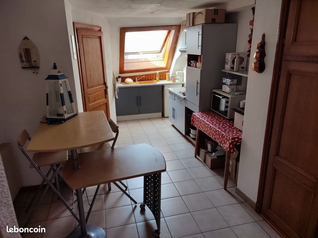 2 pièces entièrement meublé en plein centre ville dans un petit bâtiment de seulement 3 appartements. Cuisine équipée : Plaques, four, frigo, hotte, micro ondes, toute la vaisselle nécessaire, table. Lit 2 places, tables de chevet, armoire, Tv. Salle de bain : Douche, meuble ect Sur le palier il y a une pièce dédiée à la laverie avec lave-linge/sèche linge individuel, cela évite le bruit et l'encombrement dans l'appartement Le plus de cet appartement : le calme Loyer : 420 € + Charges : consommation au réel, compteurs individuels pour le chauffage (gaz de Ville) Libre le . Pas de frais d'agence. Accepte aide au logement. Pour un gain de temps, préparez votre dossier avec : 3 dernières fiches de paye copie recto verso carte d'identité.