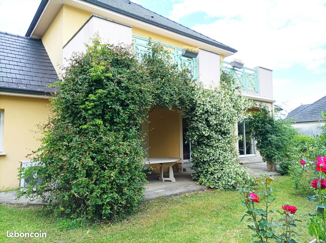 Maison sans vis à vis meublée : 1150 euros/mois. Disponible à partir du 1er mai 2026. Chauffage : pompe à chaleur réversible et poêle à bois La maison se compose : - au rez de chaussée : une pièce de vie avec cuisine ouverte, une petite chambre et une suite parentale avec Sdb, un Wc et un double garage - au premier étage : 2 chambres, une Sdb et un balcon - un jardin arboré et une piscine. Cuisine équipée avec un four, un four à micro-ondes, un frigo/congélateur, des plaques de cuisson et une hotte, un lave vaisselle et un lave linge. Jardin et piscine à entretenir tout au long de l'année. Caution 2100 euros et garants.