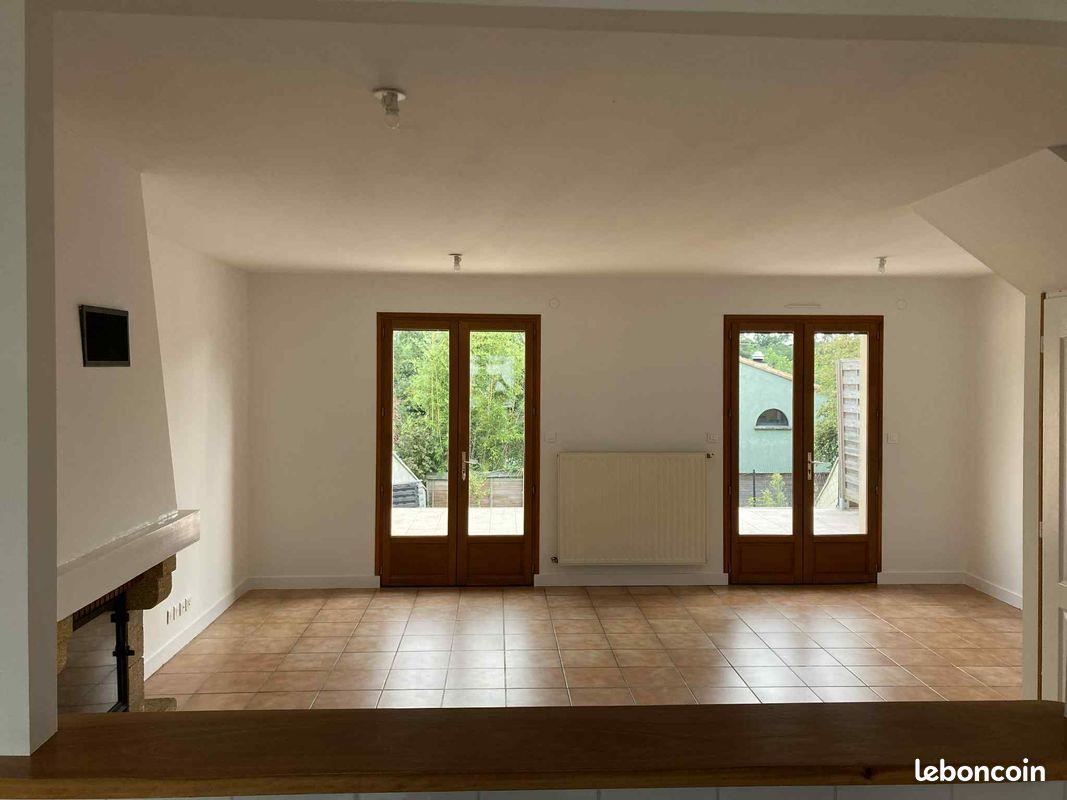 Maison mitoyenne sur 3 niveaux rez de chaussée 48 m² : cuisine ouverte aménagée, salon/salle à manger, cheminée, placard, w-c étage : 3 chambres en sous pente 13 & 11.50 & 10 m², salle de bain baignoire w-c double vasque sous-sol : 56 m² avec buanderie évier 2 places de stationnement terrasse : 20 m² jardin en pente : 100m² chauffage gaz, volet roulant électrique au rez de chaussée, 2 places de parking devant la maison entrée commune quartier de la gare, collège accessible à pied , bus 91 et 71