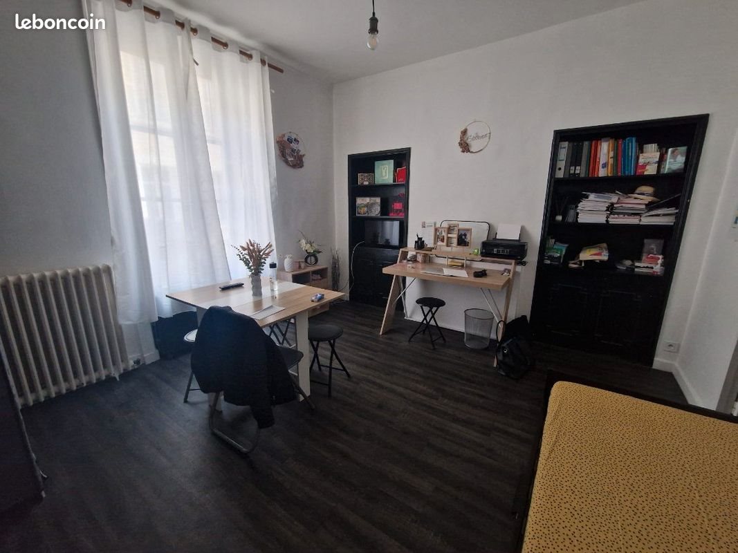 A Chateauroux, au début de la rue des Etats-Unis, à proximité immédiate de l'hyper centre-ville et proche toutes commodités, appartement 2 pièces situé au rez-de-chaussée d'un petit immeuble de 3 logements très calme. Comprenant une pièce principale avec bibliothèques intégrées, une cuisine séparée meublée et partiellement équipée (plaques, four, combiné frigidaire et congélateur, micro-ondes...),une salle de bains avec Wc Cave privative et parking vélo Disponible à partir du 15 mars Loyer : 380 euros + charges : 80 euros (chauffage, eau chaude, électricité des parties communes) Soit un total de 460 € par mois Permis de louer Ok Des revenus stables et proportionnés sont souhaités