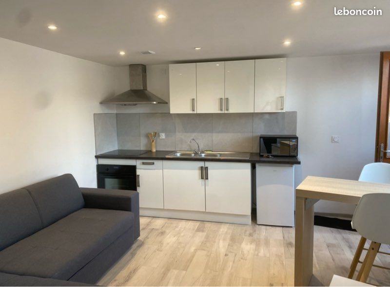 Studio meublé de 20 m2, rénové en 2023, à louer en plein centre de Bourg de Péage proche des quais. Il est composé de : -une cuisine toute équipée -un canapé convertible -un bar avec tabourets -une salle de bain avec wc Le studio est chauffé au chauffage électrique. Il est au prix de 390€ / mois, eau et électricité non comprise. Disponible début avril.