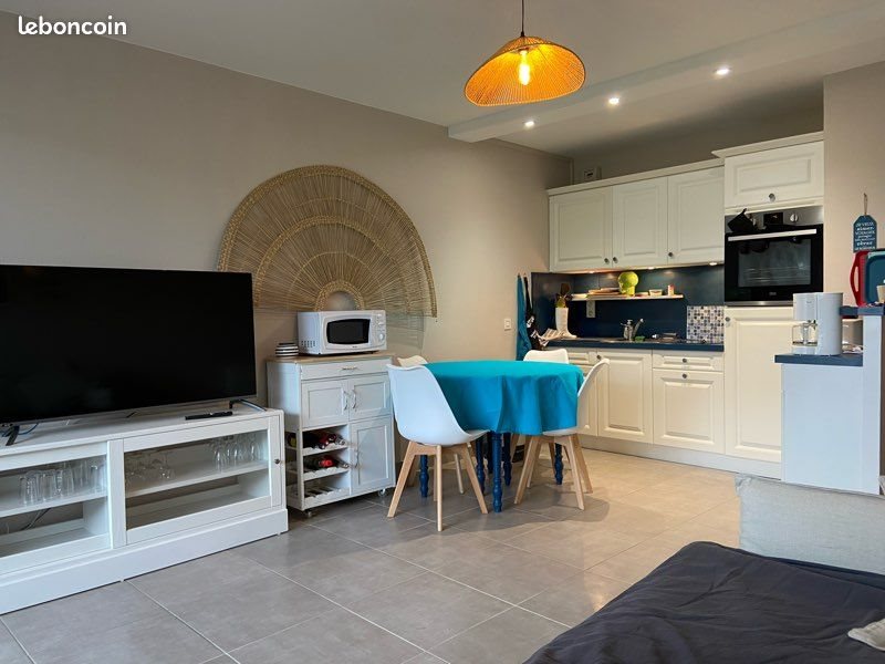 T2 meublé Rez de jardin expo sud Proximité commerce Carrefour parking local à vélo chauffage électrique Cuisine équipée et aménagée Canapé lit Chambre lit en 160 avec armoire Machine à laver Proche centre équestre 5 mn plage benoît 5 mn Pouliguen 5 mn centre des congrès Atlantia Piscine