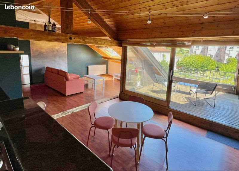 Appartement meublé 2 pièces + bureau/ dressing avec terrasse - Yssingeaux centre Dans une petite copropriété calme située au cœur d'Yssingeaux, au dernier étage, bel appartement meublé de 50m2 loi Carrez, comprenant : • Un grand espace salon/séjour traversant, très lumineux • Une cuisine ouverte équipée • Une chambre indépendante • Un bureau fermé (ou dressing/espace télétravail) • Une salle de bain avec baignoire, douche, machine à laver • Une terrasse de 20 m2 exposée Est/Ouest (soleil matin et soir) • Fenêtres dans toutes les pièces, belle luminosité naturelle Caractéristiques techniques : • Chauffage individuel et Clim réversible • Double vitrage • Stationnement facile à proximité • Meublé et équipé ?Disponible le 1er mars ?Loyer : 720 € / mois Cc (charges, ordures ménagères, parties communes) ❌Non inclus : eau, électricité