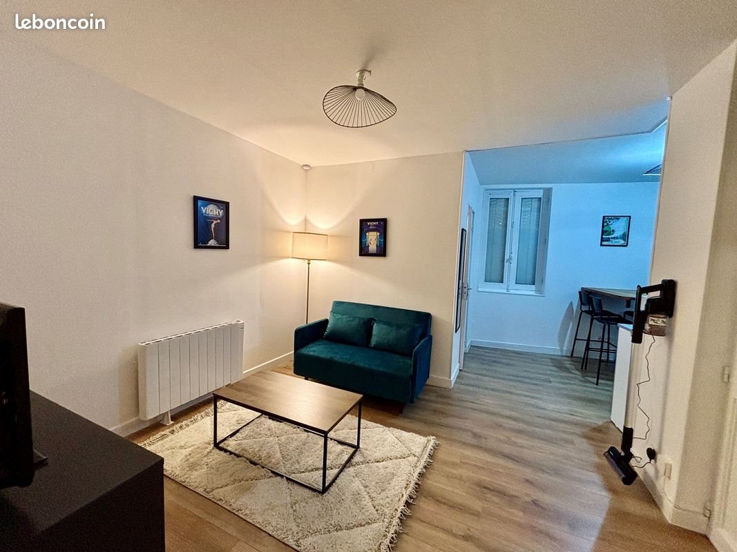 Nous proposons à la location ce bel appartement T2 entièrement meublé et rénové, situé au rez-de-chaussée d’un immeuble de 2 étages avec cour intérieure sécurisée, en plein centre historique de Vichy (Eglise Saint-Blaise), à proximité immédiate des commerces et transports. Description du logement : • Séjour avec canapé convertible et Tv écran plat • Chambre séparée avec lit double 140 cm (lit coffre avec rangement) • Cuisine équipée : réfrigérateur-congélateur, four, micro-ondes, plaque de cuisson, cafetière Senseo, grille-pain, nécessaire de vaisselle, fer et table à repasser • Salle d’eau avec douche, meuble vasque, Wc et machine à laver (marche pour accès douche) • Cave fermée de 10 m² incluse • Chauffage électrique avec ballon d’eau chaude thermodynamique neuf (2025) pour optimiser la consommation d’énergie (environ 40€/mois). • Radiateur salon neuf pilotable à distance • Dpe : classé D (ré isolation récente, diagnostic disponible) ? Disponible à partir du 1er avril 2026 Loyer de 636€ dont 6€ de charges (Tom). ? Contactez moi pour plus d’informations, organiser une visite ou recevoir une vidéo du logement via WhatsApp.