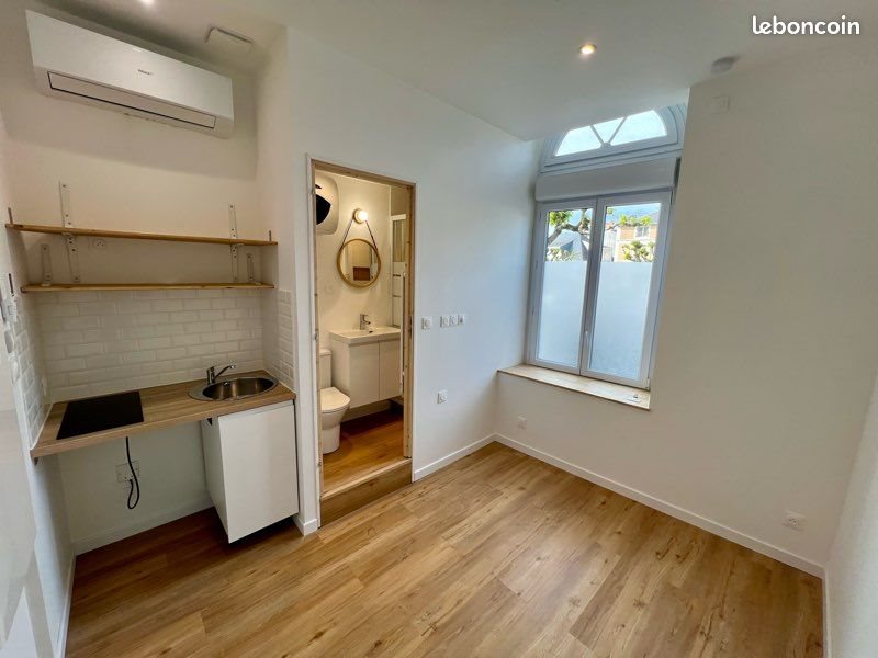 Studio lumineux et refait à neuf situé à deux pas du centre-ville, au 14 boulevard d’Alger à La Flèche. À proximité immédiate de l’IFSI et du Prytanée dans un quartier calme. Proche toutes commodités (boulangerie à 30 mètres, bar tabac, etc) ainsi que de nombreuses places de parking gratuites dans cette rue en plus d’un garage à vélo privatif dans la courette. Petite surface idéal pour personne seule et exigeante sur la qualité des équipements: - Clim réversible pour une fraîcheur l’été et une chaleur enveloppante l’hiver, avec une faible consommation d’électricité. - Ballon à production d’eau chaude instantanée pour ne jamais avoir à finir sa douche à l’eau froide - Sèche serviette - Plaque à induction - Platine pour accrocher votre Tv au mur (pas encore mis en place sur la photo) - Arrivée fibres en attente Une buanderie commune au Rez de chaussée de cet immeuble de 6 logements est en cours d’achèvement Cave commune à disposition