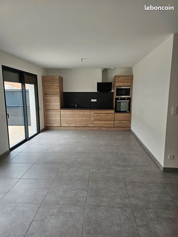 Villa de construction récente à Narbonne proche centre-ville. Se compose en Rdc d'un grand hall d'entrée avec placard, Wc et accès au garage, une pièce à vivre avec cuisine ouverte équipée, grande baie vitrée donnant accès sur le jardin. A l'étage 3 chambres avec une salle d'eau et un Wc. Surface habitable : 89m². Terrain 160 m² Notes : 2places de parking devant le garage, cuisine équipée, menuiseries en alu double vitrage, volets roulants électriques, clim split. 1400.00 € de loyer.