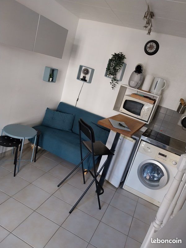 Idéal étudiant. Location petite maison meublée 24 m2 libre le 10 février 2026, 2 pièces bien agencées dans le vieux St Pierre des Corps à proximité de la gare Tgv et toutes commodités. Rdc : 1 pièce séjour, cuisine meublée, plaque induction, lave-linge séchant, frigo, four micro-ondes, sofa convertible, étagères, rangements. Étage : 1 chambre, lit 140, 1 bureau, étagères, rangements, penderie, salle de douche avec wc et sèche serviettes. Cave pour vélos et conteneurs à poubelles.