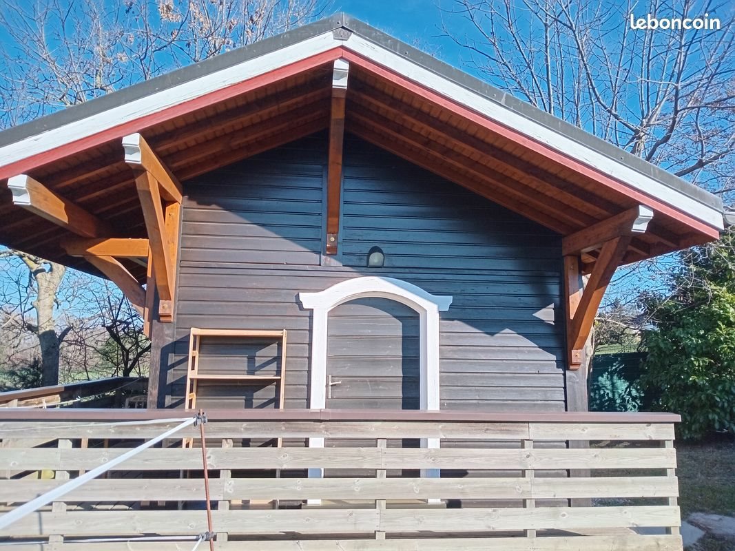 A louer, petit chalet de 15M² avec mezzanine. Petite cuisine équipée ( micro-onde, frigo avec compartiment congélateur, 2 plaques de cuisson éléctriques, bouilloire, machine à café dolce gusto, lave-linge, batterie de cuisine et vaisselle). Salle de bain avec douche, wc et lavabo. Salon avec table, chaises, télé et fauteuil, accès wi-fi. Mezzanine avec lit double (160cm), meuble et accessoires de rangement. Idéal pour une personne seule. L'accès à la mezzanine se fait par une échelle. Le petit chalet se trouve dans une propriété privée, clôturée où nous avons notre habitation principale. Il y a une place dans la cour pour une voiture, ainsi qu'un balcon avec une rambarde qui fait tout le tour de la maisonette. Les animaux de compagnie ne sont pas admis. Une caution de 500€ est à prévoir le jour de l'état des lieux. Le loyer est de 650€/mois, charges comprises, à verser avant le 10 de chaque mois. Prix ferme.