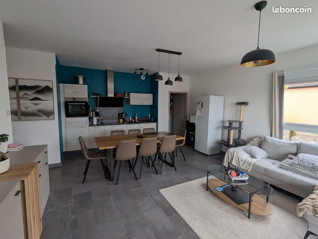 Loue appartement F3, 80 m2 au Rdc d'une résidence de 6 appartements. Appartement lumineux, grande pièce à vivre avec cuisine équipée (frigo, hotte, plaque induction, lave vaisselle, four). 2 chambres, 1 cellier, 1 Wc séparé, 1 Sdb avec douche, baignoire, meuble et sèche serviettes. Grand placard dans le couloir, 1 grande terrasse et un grand garage et une place de parking. Chauffage au sol électrique. Libre début mars 2026 Loyer 750€ + 40€ charges (entretien des communs, des extérieurs, eau et électricité des communs)