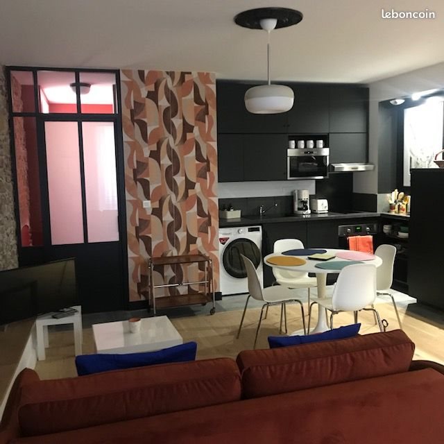 Superbe loft au calme absolu, entièrement rénové et meublé style 70's situé en hyper centre de Chalonnes sur Loire au 7 rue Notre Dame. Au Rdc surélevé d'un immeuble de caractère et proche de toutes les commodités : place du marché, boulangerie, coiffeur, fromager, épicerie etc et à 2 pas des Quais de Loire. Parquet en chêne, mur en pierres apparentes, le loft est composé d'une entrée avec placards aménagés, pièce de vie avec canapé-lit, tables basses, Tv, fibre disponible, cuisine ouverte aménagée et équipée (plaques induction, placards hauts et bas, réfrigérateur, hotte, four, lave-vaisselle, lave-linge séchant, vaisselle, casseroles, plats, couverts....) table, 4 chaises, chambre séparée avec cheminé décorative, lit king size avec literie haut de gamme hôtelière (linge de lit, 2 oreillers, couette...), salle de bain avec lumière naturelle, meuble vasque, miroir, sèche serviettes et toilettes indépendantes. Possibilité d'apporter vos meubles Disponible janvier 2026 Interphone Chauffage électrique à inertie sèche dernière génération Pas de frais d'agence Eligible Apl Dossiers garants et locataires souhaités avant la visite Loyer : 700€ + Provisions sur charges : 30€ comprenant l'eau froide et l'entretien des parties communes = 730€