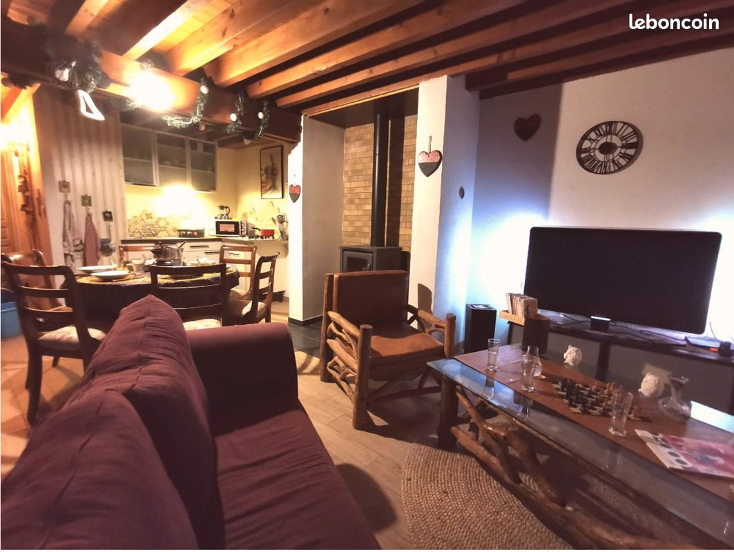 Type : Maison individuelle R+1 bardée bois type chalet, Adresse : 25370 Jougne Surface : 76 m2 – Exposition Sud location meublé 2 chambres, salon sur cuisine ouverte, terrasse et jardin, place de parking. Idéalement situé à 6 min de Vallorbe. Entièrement fournie (vaisselle, appareil ménager...). Ce logement présente de bonnes performances énergétiques grâce à un chauffage mixte bois/électricité et une ventilation double flux. Classe énergétique estimée C (≈110–115 kWhEP/m2/an) ■ Classe Ges estimée A (faibles émissions de Co■) ■ Consommation totale ≈ 8 700 kWhEP/an Coût énergétique annuel estimé ≈ 1 000 à 1 200 €/an ( vie courante, chauffage, production eau chaude..). Travaux récents : Isolation complète (murs, sol, plafond) en 2023 réfection électricité, plomberie et salle de bain neuves poêle à bois avec four Vmc double flux chauffe-eau électrique 2023 plaque gaz Plancher chauffant électrique + radiateurs connectés ≈ 8 700 kWhEP/an soit 114 kWhEP/m2/an C (basse, ~110–115 kWhEP/m2/an) A (faibles émissions) ≈ 1 000 à 1 200 €/an Caution à prévoir. 1350 euros/ mois hors charges sauf poubelles et déneigement des communs inclus.
