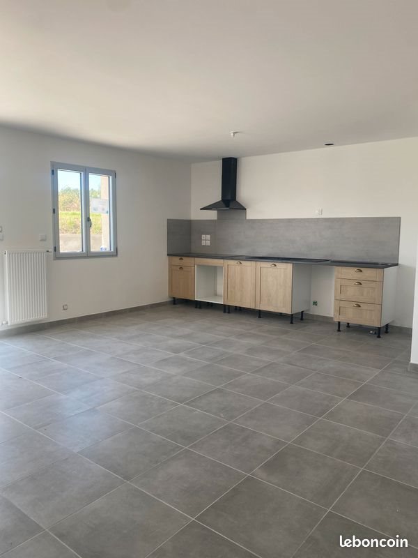 Maison neuve, plain pied, disponible le 1er février 2026, 4 pièces, 3 chambres, cuisine aménagée avec plaque vitro et hotte aspirante, salle de bain avec douche à l'italienne... Pompe à chaleur, jardin 600 m2 avec terrasse.