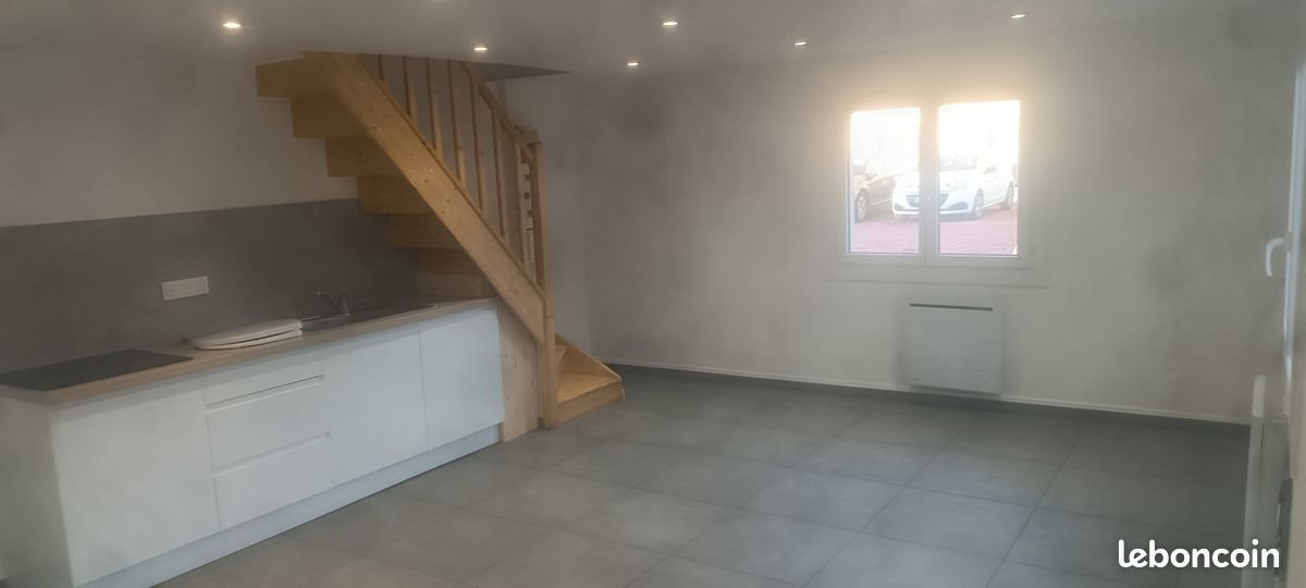 52 m2 Rdc : salon séjour, cuisine ouverte (meubles + plaque de cuisson), wc. Étage : 2 chambres, sdb. 1 place de parking loyer hors charges : 670 euros compteur électrique et eau indépendants, chauffage électrique. Cdi demandé