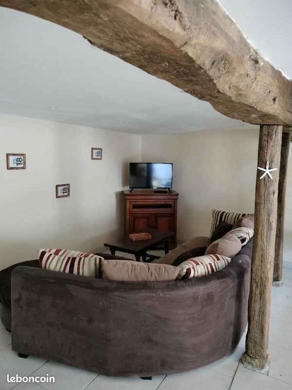 Loue maison mitoyenne entièrement meublée, qui vient d'être entièrement rénovée. Au rez de chaussée: cuisine aménagée (four, frigo, lave vaisselle, plaque vitrocéramique) ouverte sur le salon (avec canapé d'angle + télévision) et la salle à manger + Wc. A l'étage: 2 chambres (la première avec un lit de 120x190 et la seconde avec un lit de 140x190), 1 pallier avec un clic clac, 1 salle de bain avec douche, Wc et machine à laver. Pas de garage, ni de dépendance, ni de jardin, uniquement une cour gravillonné fermé avec portail électrique. Il n'y a pas de connexion internet dans le logement et pour le moment, il n'y a pas de possibilité de la faire installé. Le réseau est de très mauvaise qualité dans la région. Loyer 700€ + 150€ de provision sur charges (eau + électricité avec compteurs divisionnaires et ordures ménagères) Libre début avril.