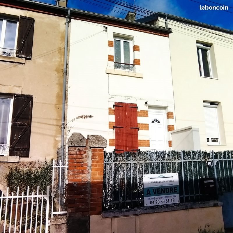 Particulier vend maison de ville de 85 m² au sol, mitoyenne des 2 côtés, située 10 rue de la perception, proche du centre de Cusset. Elle est composée comme suit : Rdc surélevé: séjour-cuisine donnant sur terrasse de 12 m² avec vue dégagée (dotée d'un escalier en bois pour accéder au jardin) Rez de jardin: un espace bureau, une chambre, un wc et un couloir traversant, conduisant au jardin d'un côté et de l'autre à la courette devant la maison, côté rue. 1Er étage: une chambre, une grande salle de bain (baignoire d'angle, douche, double vasque, wc). 2Ème étage: une 3éme chambre sous combles. Jardin de 150 m² avec portail (à changer) offrant la possibilité de rentrer un véhicule appentis sous la terrasse. À noter que la fenêtre de la chambre du rez de jardin donne dans ledit appentis et n'est donc pas très lumineuse. Chauffage gaz avec chaudière à condensation récente (2021). Double-Vitrage. Toiture neuve. Stationnement facile dans la rue. La rénovation complète de cette maison a été réalisée en 2007. Elle était louée jusqu'à ce jour et est parfaitement habitable dans l'état mais nécessite un rafraîchissement. Taxe foncière : 814€ Dpe: D D'autres photos sur demande. Je ne souhaite pas être sollicité par les agences.