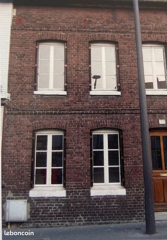 Maison de ville 5 pièces 78 m² au rez-de-chaussée, couloir, cuisine, séjour, toilettes, ainsi qu'une cour cimentée et fermée avec bâtiment au 1er étage, trois chambres dont une grande, une salle de bains au 2ème étage un grenier aménageable fenêtres double vitrage avec volets