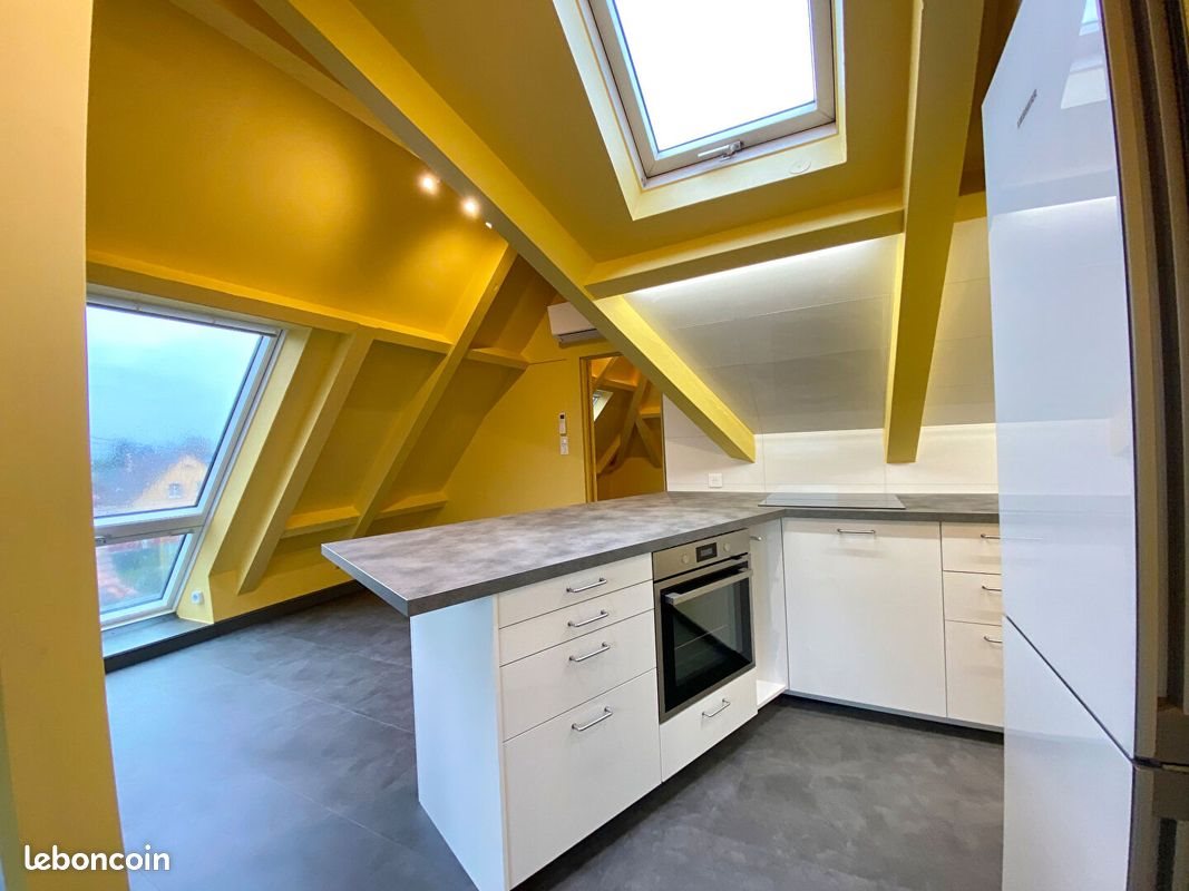 Appartement 3 pièces 60 m² Rue Du Maréchal Foch - Geispolsheim A proximité immédiate de la gare et de toutes les commodités, avec un arrêt de bus au pied de l'immeuble, et accès à l'autoroute facilement. Au deuxième étage d'une petite propriété, agréable appartement trois pièces entièrement rénové, d'une surface de 60 m2 au sol (et 23 m2 habitables). L'appartement se compose d'une pièce de vie principale avec une cuisine équipée, d'une grande chambre ainsi qu'une seconde pièce pouvant faire office de coin nuit, d'une salle d'eau avec douche et Wc. L'appartement dispose également d'une place de parking privée à l'extérieur. Climatisation réversible installée dans le logement. Chauffage et eau chaude individuels électriques. Disponible Le 3 Décembre. Surface : 60 m² Consommation énergie primaire : 239 kWh/m²/an Consommation énergie finale : Non communiqué Montant estimé des dépenses annuelles d'énergie pour un usage standard : entre 400 € et 600 € par an. Prix moyens des énergies indexés sur l'année 2021 (abonnements compris) Les informations sur les risques auxquels ce bien est exposé sont disponibles sur le site Géorisques :