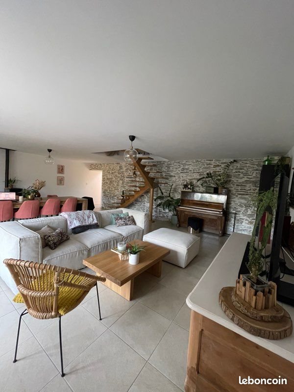 Maison Moisdon la rivière Disponible fin janvier À louer, maison de 5 pièces, d’environ 120 m², située en campagne tout en étant à proximité des commerces et des commodités, à seulement 10 minutes de Châteaubriant. Idéal pour les amoureux de la nature maison située au forges. Vous y trouverez : • une agréable pièce de vie, • une cuisine aménagée et équipée (plaque, four, lave vaisselle) • des Wc au rez-de-chaussée, • une buanderie, • une petite véranda, • deux chambres, • une salle d’eau avec Wc. La maison est chauffée par un poêle à granulés. Le budget électricité est d’environ 100 €/mois (variable selon votre consommation). Elle est équipée d’une borne électrique pour recharger les voitures. Elle dispose également d’un garage ainsi que d’un joli jardin. Chemins de randonnée et étang à proximité. Surface : 120 m² Surface extérieure : 550 m² Loyer : 820 €/mois charges comprises Montant des charges : 30 € (eau + ordures ménagères, l’eau est prise en charge dans le loyer) Dépôt de garantie : 1 mois de loyer hors charges, soit 790 € Afin de mieux étudier votre candidature, merci de m’envoyer une description de votre profil (situation, âge, nombre de personnes au foyer, motivation) et je vous répondrai avec plaisir.