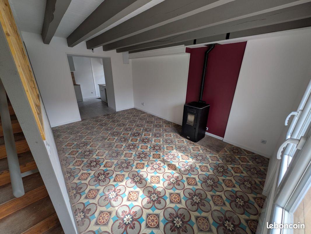A louer, une maison d’habitation d’une surface habitable de 68 m² (loi carrez), comprenant en rez-de-chaussée une cuisine semi-ouverte sur un séjour avec poêle à granulés, au premier étage une chambre avec balcon, une salle d’eau avec douche et Wc, au deuxième ét...