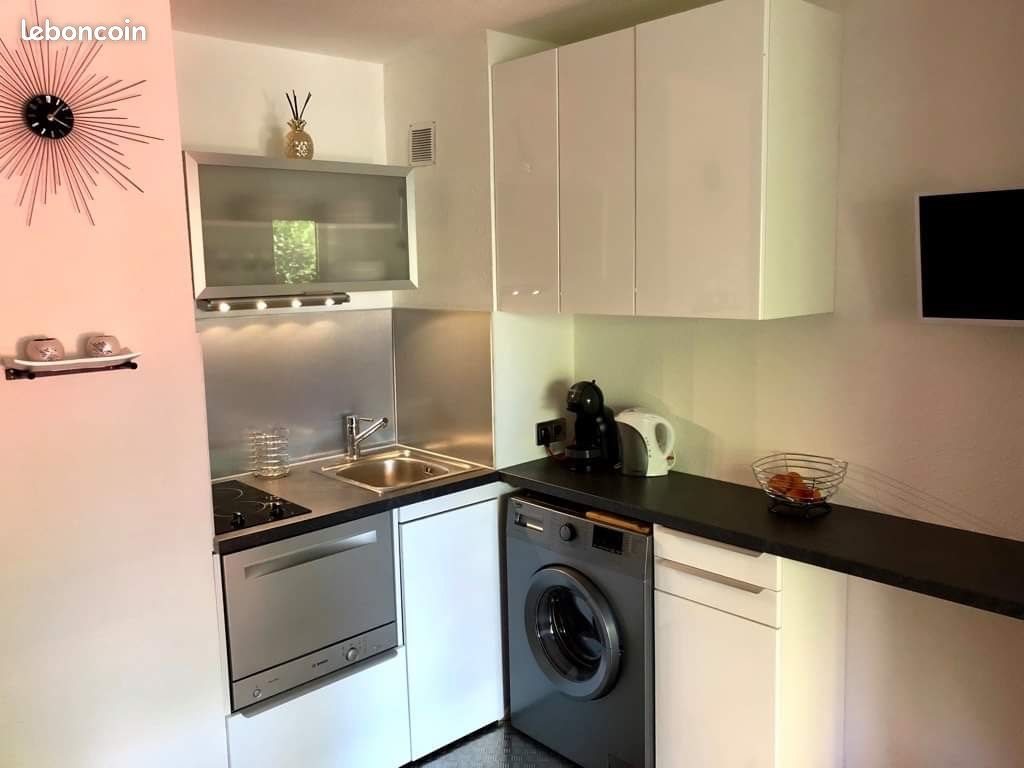 Port La Nouvelle(11) quartier des lacs - A louer T1 climatisé de 25 m2, très bien équipé, idéal pour personne seule. Dispose d'une belle terrasse ensoleillée de 17 m2 et place de parking privée. Situé à 450 m de la plage et des restaurants couchage : une chambre avec un lit de 140 190 et armoire de rangement alèses tissus, oreillers, couettes et couvertures à disposition. Prévoir draps, taies d'oreiller, housse de couette et linge de toilette. Équipements : frigo avec congélateur, micro-ondes, plaque électrique, cafetière dolce-gusto, bouilloire, grille-pain, plancha électrique, lave-vaisselle, lave-linge, étendage, aspirateur Climatisation réversible, Tv écran plat Terrasse avec salon de jardin et 2 bains de soleil Loyer charges comprise : 450 euros - hors Edf