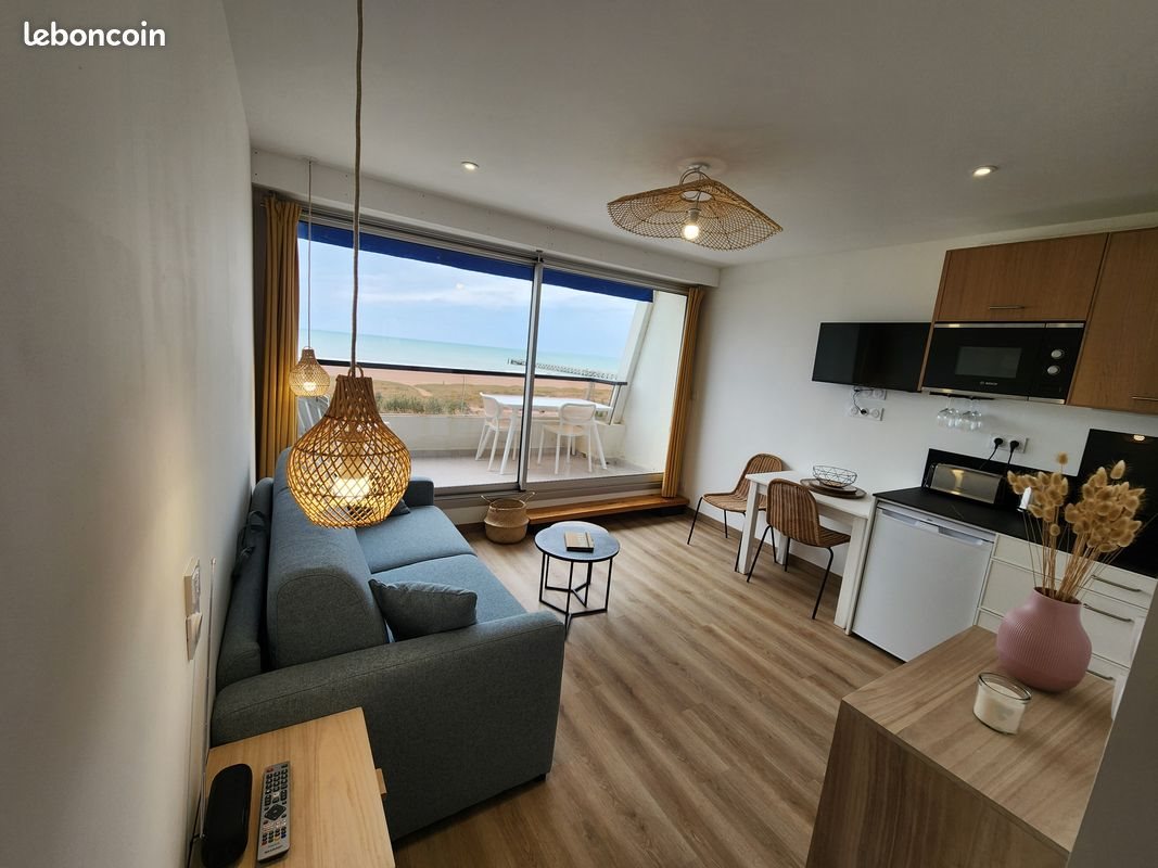 ? Location d'un studio meublé à Saint-Jean-de-Monts Face mer entièrement rénové en 2022. ? Libre à l'année dès le ? Le studio est composé de : ▪️ Espace cuisine équipée (frigo-freezer, micro-ondes, plaque induction, bouilloire, machine à café, grille-pain), ▪️ Espace de vie avec Tv, un canapé lit (matelas à usage quotidien 140x190 de bonne qualité), table à manger pour deux. ▪️ Sde, toilette, sèche serviette, lave linge. ▪️ Terrasse (6m2) avec grande table à manger et deux chaises + 2 bains de soleil. ▪️ Cave. ? Gardien à l'année ? Pas de place de parking privé mais du stationnement disponible autour du logement. ♨️Chauffage électrique. ? Loyer: 500 € Non inclus : électricité + Eau Caution demandée ? Me pour plus d'informations. ?Photos supplémentaires à la demande.