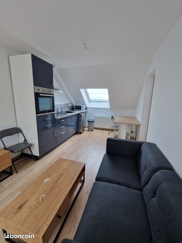 Quartier de la Gare, maison entièrement rénovée en 2022 en plusieurs logements, studio meublé à louer d’une surface de 30m² avec un interphone. Les fenêtres ont toutes été changées, elles sont en alu double vitrage. Une grande pièce à vivre traversante et donc très lumineuse avec cuisine neuve et équipée (micro-onde, four, plaques à induction, hotte, frigo, vaisselle...). Une grande salle de bain avec douche, wc et meuble vasque. L'appartement est meublé (lit, canapé, table basse, meuble télé, table, chaises, machine à laver) et équipé de la fibre. Le chauffage est individuel et électrique. Il est proche de commerces et le stationnement est facile et gratuit à proximité. Il dispose également d’une cour extérieure commune. Loyer : 450€ dont 45€ de charges (eau, taxes ordures ménagères, entretien et électricité des communs)