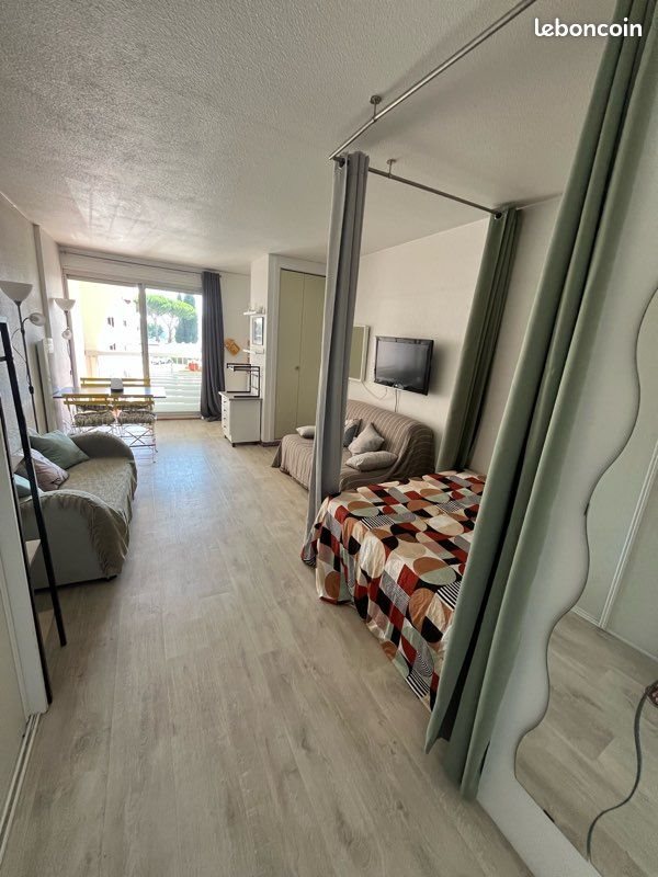 À louer jusqu’à mais où juin. 34M2 + terrasse, confortable et idéalement situé, idéal pour 4 personnes et 6 max. Commerces et la plus belle plage de la Grande Motte au pied de l'immeuble. Une belle terrasse équipée de 2 tables et 6 chaises. Coin nuit avec grand lit, une cabine fermée avec 2 lits superposés et une belle pièce à vivre avec canapé convertible Bz. Sdb avec grande douche, we séparés. Appartement traversant très aéré parfait pour vivre de longue période où en vacances Au calme, Parking privatif dans la résidence. Ascenseur. Pour semaine ou quinzaine, nous consulter