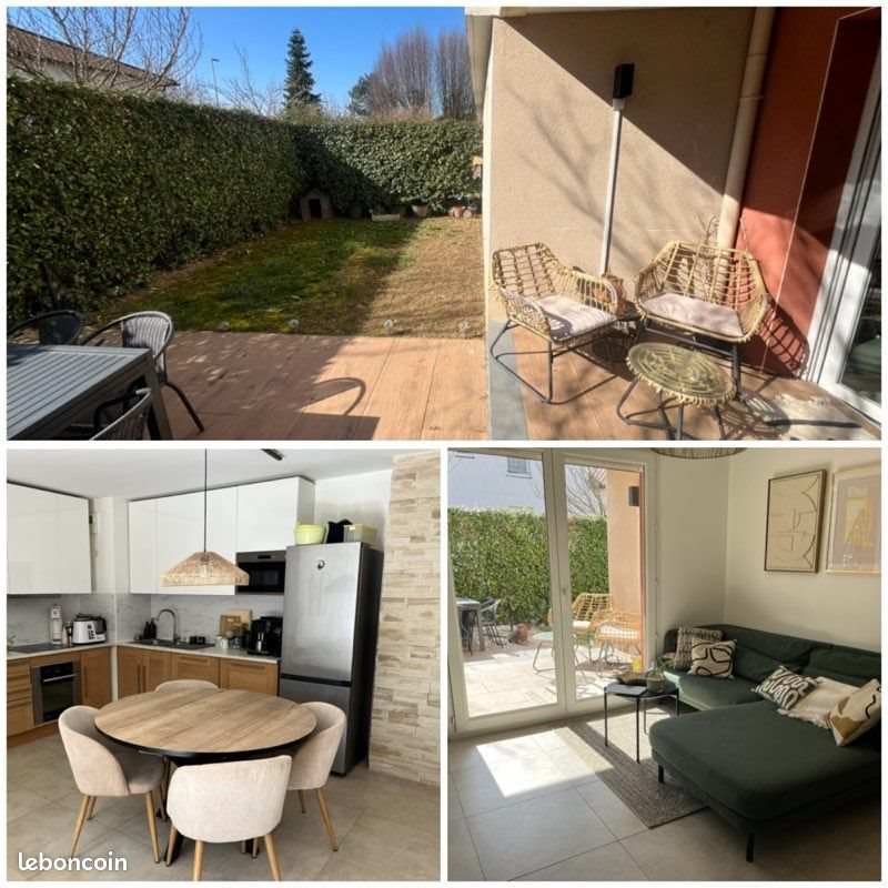 À louer – Appartement T3 meublé avec jardin et garage Disponible à partir de mi-mars À seulement 600 mètres de la gare de Saint-Marcel, sur la ligne Bourg-en-Bresse – Lyon (30 minutes jusqu’à Lyon Part-Dieu), ce T3 meublé de 61 m² en rez-de-chaussée vous séduira par son confort, sa fonctionnalité et son agréable espace extérieur de 45 m² (terrasse + jardin). Situé dans un environnement calme, proche de toutes commodités (boulangerie, école, épicerie-tabac, coiffeur), il est idéal pour un couple, une petite famille ou un(e) professionnel(le) en mobilité. ? Composition : • Pièce de vie lumineuse avec cuisine ouverte, entièrement équipée : lave-vaisselle, plaque induction, hotte intégrée, micro-ondes encastré, réfrigérateur-congélateur, table et chaises • Salon meublé avec canapé et meuble Tv • Chambre 1 : lit double 160 cm avec tête de lit et placard mural intégré • Chambre 2 : actuellement aménagée avec un bureau et un dressing, possibilité d’ajouter un lit selon les besoins • Salle de bain avec baignoire, meuble vasque, et placard de rangement • Wc suspendu séparé avec lave-linge • Terrasse et jardin privatifs de 45 m², parfaits pour profiter des beaux jours Garage fermé en box, inclus avec la location ✅ Confort & équipements : • Appartement meublé et prêt à vivre • Équipements inclus : lave-vaisselle, lave-linge, réfrigérateur-congélateur • Rangements nombreux (placards, dressing) • Double vitrage, chauffage performant • Résidence calme, garage fermé + stationnement facile à proximité ? Conditions de location : • Loyer : 990 € / mois • Charges : 40 € / mois (entretien des communs, ordures ménagères, eau froide) • Dépôt de garantie : deux mois de loyer • Caution obligatoire ? Saint-Marcel (01390) ? Disponible à partir de mi-mars ? Visites sur rendez-vous Contactez-nous pour plus d’informations ou pour planifier une visite !