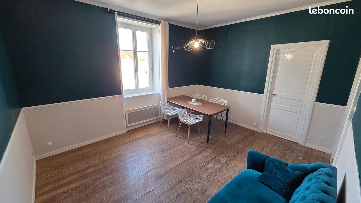 Appartement T3 meublé disponible fin octobre Plein centre de Vallet à 150m de la place du marché et des commerces. Proche écoles, piscine, cinéma, moins de 5 minutes à pied. Tout juste rénové avec goût. Cuisine équipée avec plaque induction, hotte, four, micro-ondes, réfrigérateur, lave-vaisselle, bouilloire. Salle de bain avec douche à l’italienne, lave linge Salon/salle à manger avec table chaises et canapé. Plancher véritable et très belle hauteur sous plafond, de style haussmannien. Chambre 1 avec lit et dressing pax ikea avec éclairage automatique. Chambre 2/ bureau vide, à aménager à votre convenance.(9m²) Le plus, un très grand placard/dressing équipé de penderie et d’étagères. Place de parking extérieur Cave Internet : Fibre installée