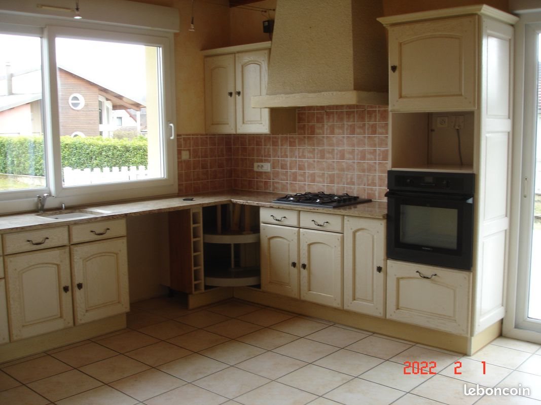 Loue Champagnole Appartement de 5 pièces d'une surface de 90 m² dont 3 chambres sur 2 niveaux, avec terrasse et jardin Orienté Est - ouest, très lumineux et très calme Chauffage individuel gaz Niveau route : une pièce en L séjour, salon cuisine équipée, une chambre, une salle de bains double vasque et une douche, W..C. Séparé Niveau inférieur : 2 chambres, un cabinet de toilettes avec vasque et W.C., un dressing, un local de rangement et un garage Loyer hors charge : 920 euros Eau, électricité et gaz non compris
