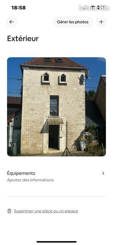 Dans corps de ferme -Loue pigeonnier sur deux étages -Totalement meublé ( vaisselle, télévision , frigo ,gaziniere , micro onde, table,chaises…) -chauffage électrique -escalier à pas décalés pour gain de place. -Jardinet avec table et chaises extérieur -idéal personne seul ou couple -animaux sous réserve car trop de dégâts -Place pour véhicule à intérieur du corps de ferme -compteur eau et électricité indépendant. -Village à 30 km de Reims,Soissons et Laon 12km de Fismes -Références exigées , pas sérieux s abstenir