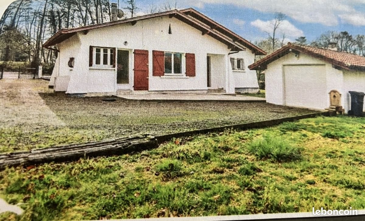 En fond d'impasse, maison basco-landaise de plain pied comprenant un séjour, une cuisine, trois chambres et une salle d'eau, Wc séparé. Pompe à chaleur. Un garage indépendant. Grand terrain avec des arbres fruitiers. Proximité immediate de l'A64. Bail classique de particulier à particulier. Plus de photos disponibles sur demande. Visites selon dossier (3 derniers bulletins de salaire, avis d'imposition ...)