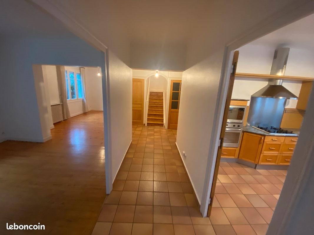 Maison située Quartier Bel-Air allée Jean Guitton 170m2+ dépendances sur terrain 350 m2. Rdc : -Cuisine équipée. -Salon-Sam. -Bureau ou chambre -Wc avec lave-mains et placard Etage : -4 chambres -Sdb -Wc séparé avec lave-mains -nombreux placards Sous-sol complet avec Sde, buanderie et salle de jeux. Garage indépendant. -Parquets et carrelage -Chauffage central gaz à condensation, fenêtre Dv, interphone extérieur. Quartier très calme à 250m de la rue Bergson. Proche école. 1320 euros charges comprises Pas de frais d’agence.