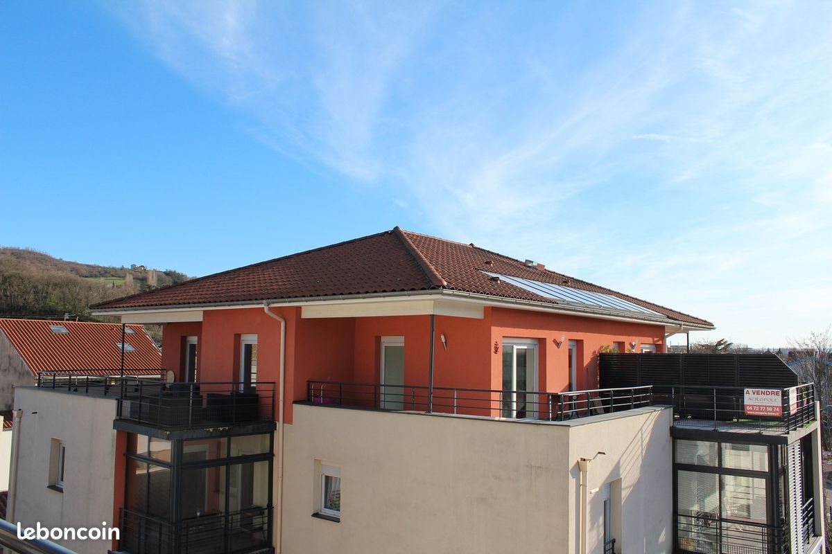 Appartement toit terrasse Roches de Condrieu Appartement climatisé (pompe à chaleur) de 69m2 avec presque autant de terrasses et vue sur les vignes, dans une résidence calme et qui souhaite le rester. Loyer 910 euros = appartement + garage+ charges copro (ascenseur, poubelles, entretien espaces communs). Situé à 3 min à pieds de la gare de Saint Clair/ Les Roches 3 ième et dernier étage avec ascenseur dans résidence sécurisée Très lumineux Grand garage 2 chambres dont une avec rangement Salle d’eau très bien meublée et grande douche Cuisine moderne avec plaques à induction, four, et mini lave vaisselle Appartement disponible dès le ,