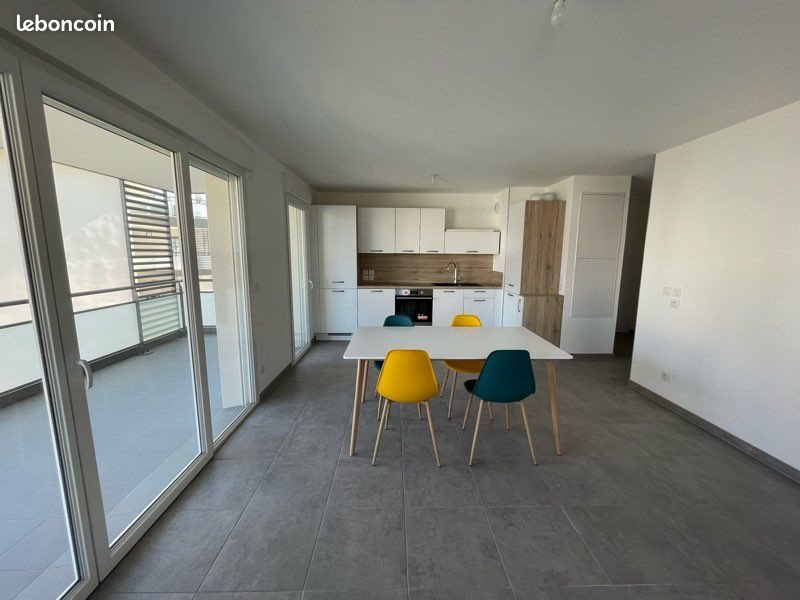 Appartement T3 secteur Brassilly à Poisy. Proche des commodités: école, arrêt de bus. Construction récente de 2021, immeuble sécurisé. 1 place de parking en sous-sol + possibilité de se garer sur les places de la copropriété à l’extérieur. Appartement situé au 1er étage, comprenant une pièce de vie avec cuisine équipée, donnant sur une grande terrasse de 14m2, exposée Est. 2 chambres avec rangements (placard ou dressing ouvert). Sdb avec baignoire, meuble vasque et sèche serviette, emplacement pour lave linge. Wc séparés + 1 pièce servant de débarras. Placards dans le hall d’entrée. Chauffage individuel au gaz. Cadre verdoyant, jardin partagé et aire de jeux pour les enfants qui font partie de la copropriété. Le logement sera disponible à partir de fin mars avec un bail meublé. Loyer: 1350€ charges comprises (70€/mois). Agence s’abstenir.