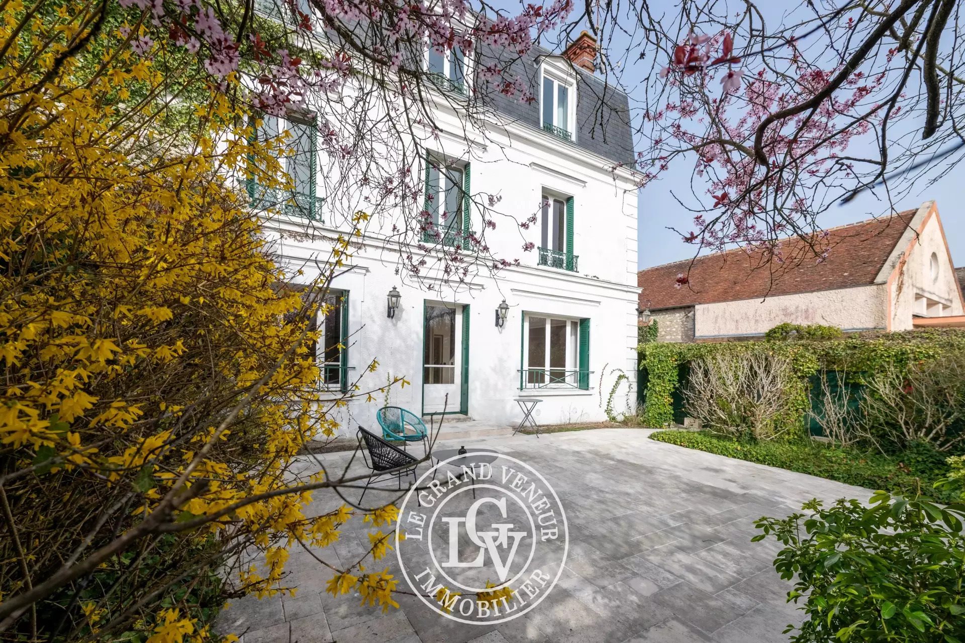 Dans l’atmosphère paisible et recherchée de Vulaines-sur-Seine, charmant village en bord de Seine situé à quelques minutes seulement de Fontainebleau, cette élégante maison de maître dévoile une propriété familiale de caractère où se mêlent authenticité, volumes généreux et douceur de vivre. Appréciée pour son environnement verdoyant et son esprit village, la commune offre un cadre de vie privilégié. Les écoles maternelle, primaire et le Collège Arnaud Beltrame sont accessibles à proximité. La gare de Fontainebleau-Avon, reliant Paris Gare de Lyon en environ quarante minutes, permet de conjuguer vie au vert et accès rapide à la capitale. Derrière sa façade élégante et intemporelle, la maison développe 288,90 m² habitables répartis sur plusieurs niveaux, révélant des espaces lumineux et une distribution idéale pour une vie familiale. Dès l’entrée, la maison affirme son caractère. Les pièces de réception offrent de beaux volumes : un salon chaleureux, propice aux moments de convivialité, prolonge naturellement une spacieuse salle à manger, idéale pour recevoir. Une cuisine indépendante complète cet espace de vie. Le rez-de-chaussée propose également une grande salle de bain avec sauna, véritable espace de détente, ainsi qu’un Wc avec lave-mains. Le premier étage accueille l’espace nuit principal avec trois belles chambres, un bureau, une salle de bain avec toilettes, une salle d'eau avec sauna, un dressing, offrant confort et fonctionnalité. Le second étage prolonge la capacité d’accueil de la maison avec trois chambres supplémentaires, un bureau, une salle d'eau avec toilettes, et une cuisine, permettant d’imaginer un étage indépendant, un espace dédié aux invités ou un aménagement évolutif selon les projets de vie. À l’extérieur, le jardin offre un cadre paisible et intime, propice à la détente. Le terrain, arboré et agréable, est agrémenté d’un puits, élément de charme rappelant l’histoire et l’authenticité de la propriété. La propriété se complète par une dépendance comprenant un garage, une remise et une buanderie. À l’étage se trouve un appartement indépendant de 41,64 m², composé d’une cuisine, d’un séjour, d’une chambre et d’une salle d’eau avec toilettes. Cet espace constitue un véritable atout : logement indépendant pour la famille ou les invités, activité professionnelle ou potentiel locatif. Par son architecture, ses volumes et sa situation privilégiée à proximité immédiate de Fontainebleau, cette propriété incarne l’esprit des maisons familiales de caractère, où l’on imagine aisément une vie tournée vers la nature, la convivialité et l’élégance d’un art de vivre aux portes de Paris.