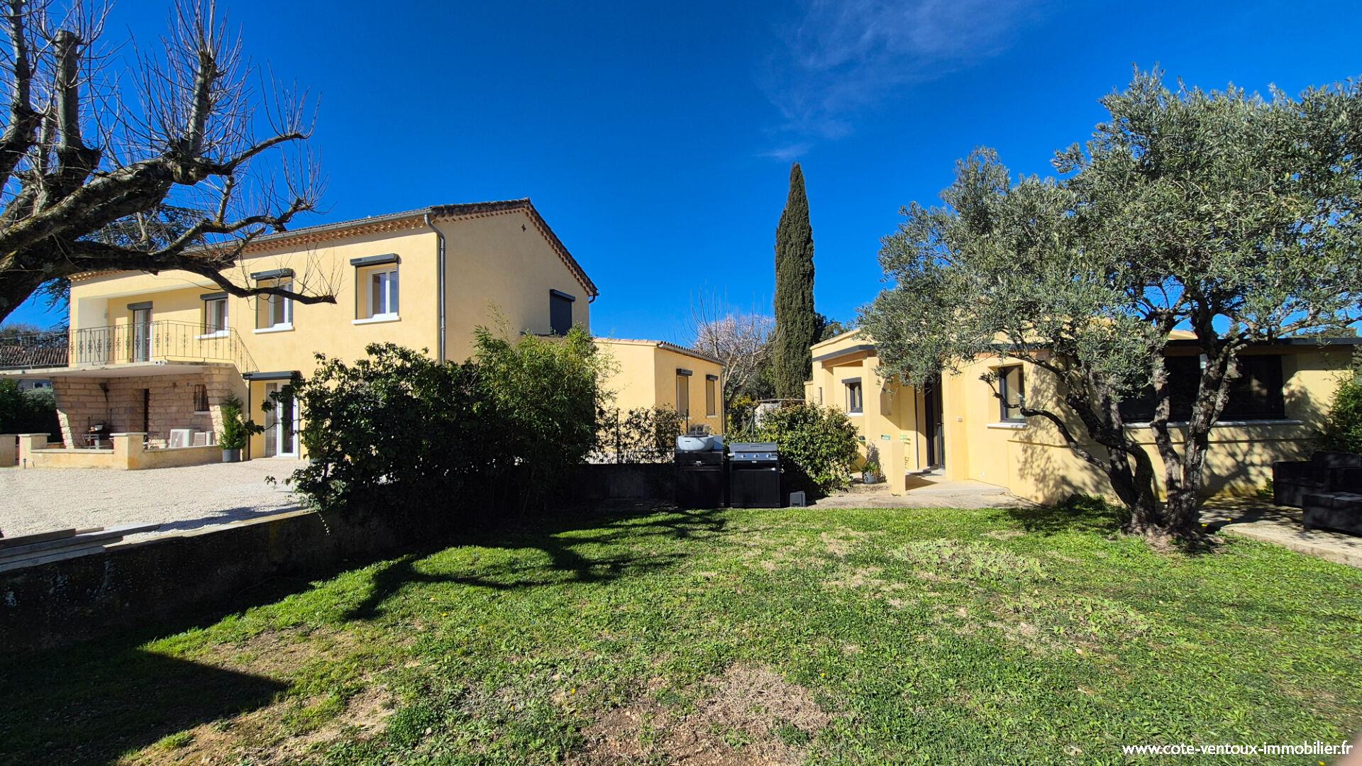 Venez découvrir ce bel ensemble immobilier entièrement rénové, soigneusement entretenu, constitué d'une maison principale de 173 m², d'un gite indépendant de 60 m², situé en campagne dans un environnement calme. Les amoureux de nature et de grands espaces seront séduits par la proximité immédiate des sentiers de randonnée, des berges du Canal de Carpentras, de la Via Venaissia et des majestueuses Dentelles de Montmirail, à seulement quelques kilomètres. Dès l'entrée, le charme opère. Un vaste séjour lumineux vous accueille, sublimé par de beaux volumes et une atmosphère chaleureuse. La cuisine équipée, élégante et fonctionnelle, prolonge harmonieusement cet espace de vie convivial. Le séjour s'ouvre sur une grande terrasse avec cuisine d'été ombragée, véritable lieu de vie supplémentaire, idéale pour profiter de toutes les saisons face à un jardin verdoyant. Côté fonctionnalité, le rez-de-chaussée dispose également d'une buanderie, d'un cellier et de toilettes indépendantes. L'espace nuit offre deux chambres avec salle d'eau privative, dont une bénéficiant d'un accès direct à l'extérieur. A l'étage, un dégagement distribue un espace de rangement, une seconde buanderie et trois chambres supplémentaires avec salle d'eau. La suite la plus spacieuse s'ouvre sur une magnifique terrasse avec vue imprenable sur le Mont Ventoux. Le gîte indépendant de plain-pied constitue un véritable atout : il propose une belle pièce de vie lumineuse avec cuisine équipée, une chambre avec dressing et une salle d'eau avec toilettes , parfait pour accueillir famille, amis ou développer une activité locative. Un espace annexe de 27 m² complète l'ensemble, idéal pour le bricolage, le stockage ou un atelier. La propriété offre un excellent niveau de confort : matériaux de qualité, climatisation réversible, chauffe-eaux thermodynamiques, volets roulants électriques, portail automatique, gouttières en zinc, adoucisseur d'eau et arrosage automatique alimenté par le Canal de Carpentras. Pour les moments de détente, vous profiterez d'une superbe piscine 10 x 5 m au sel avec régulateur de pH, véritable invitation à la douceur de vivre provençale. Implantée sur un terrain clos et paysager de 2 703 m², agrémenté d'oliviers et d'essences variées, la propriété a été pensée pour offrir différentes ambiances propices à la sérénité, à la contemplation et au plaisir de vivre en extérieur. Cette maison coup de coeur, pleine de charme, fonctionnelle et dotée d'excellentes prestations, saura répondre à toutes vos attentes. Pour un achat en toute sérénité contactez-nous. Côté Ventoux Immobilier a le plaisir de vous accueillir dans ses agences disposant d'un parking à Aubignan et Mazan. Vous pouvez estimer gratuitement votre bien en ligne sur notre site : -ventoux-