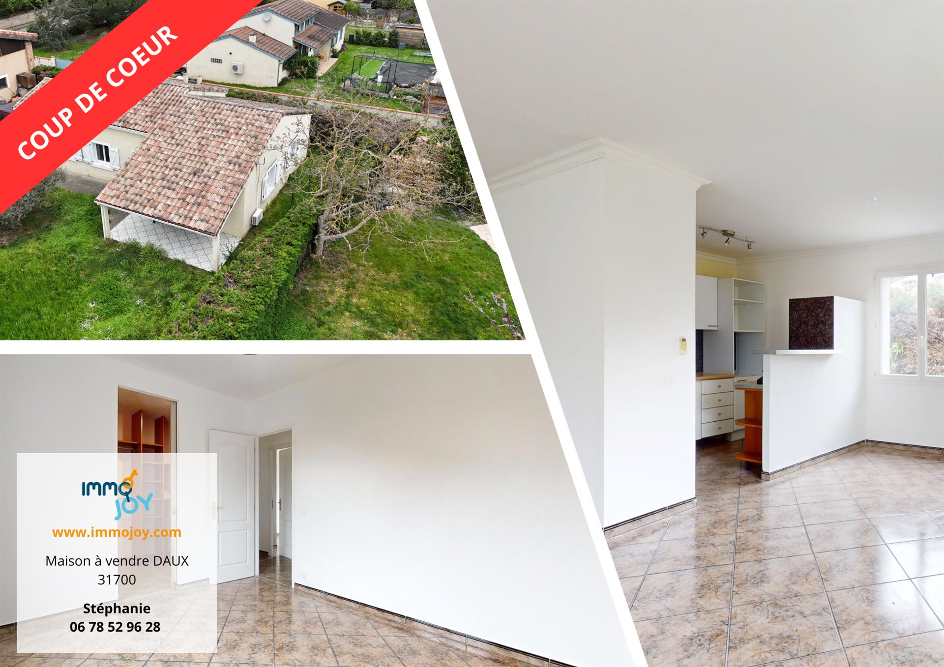 Votre conseillère immojoy a la plaisir de vous proposer sur la commune de daux, proche centre ville, dans un environnement calme et agréable, une maison de plain-pied offrant confort et luminosité. Sur une parcelle clôturée d'environ 520 m², elle se compose d'une pièce de vie lumineuse avec cuisine ouverte aménagée, de trois grandes chambres dont une avec dressing, une salle de bains, un wc avec salle d'eau, et une buanderie. À l'extérieur, un garage complète ce bien. Prestation : climatisation, terrain piscinable. Un lieu de vie idéal pour une famille ou un couple recherchant la tranquillité à proximité de blagnac et des commodités. Vous souhaitez acheter, vendre ou connaitre la valeur de votre patrimoine ? Contactez stéphanie touffet spécialiste du secteur : blagnac - beauzelle - cornebarrieu - seilh - aussonne - mondonville - daux les informations sur les risques auxquels ce bien est exposé sont disponibles sur le site géorisques : 1.