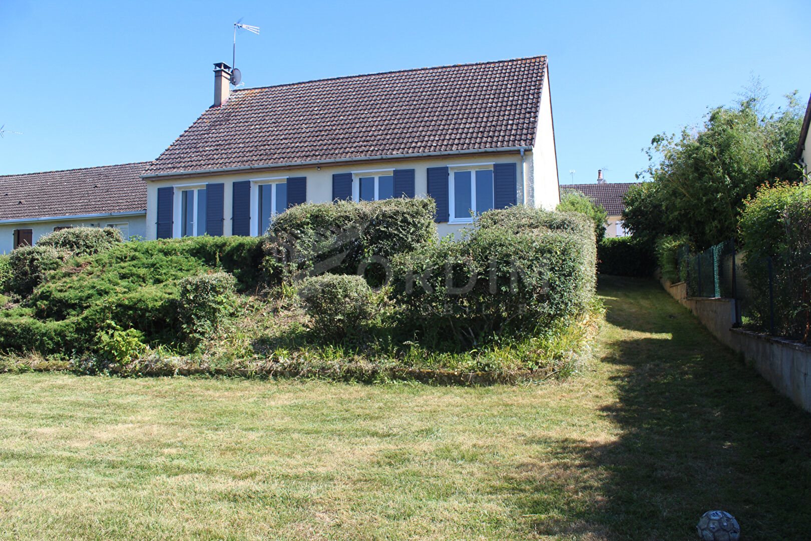 Chevannes, jolie maison de plain-pied avec terrain clos et arboré offrant entrée, pièce de vie avec cheminée -insert, cuisine aménagée et équipée (plaque, four, hotte, lave vaisselle), 3 chambres, salle de bains, toilette. Garage avec porte motorisée, Sous-sol total terrain clos et arboré.