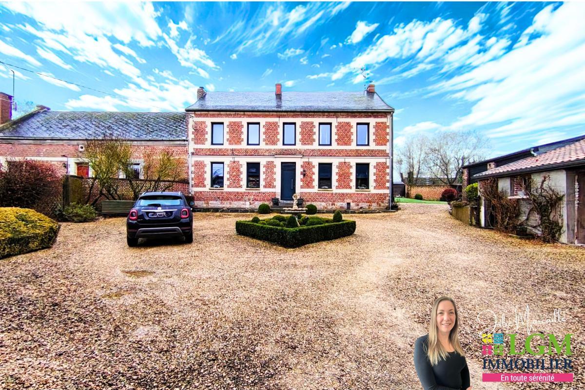À l'abri des regards, entièrement clôturée et non visible depuis la rue, cette propriété d'exception datant de 1701 se dévoile dans un cadre privilégié, où le charme de l'ancien rencontre le confort contemporain. Derrière son portail motorisé, un porche élégant mène à une cour intérieure pleine de cachet, ouvrant sur une demeure authentique aux volumes généreux. Au rez-de-chaussée Une entrée chaleureuse distribue les espaces de vie : À droite : Un vaste salon lumineux avec poêle à bois, une baie vitrée ouverte sur le jardin et une verrière qui apporte une atmosphère unique. À gauche : Une salle à manger conviviale, une cuisine équipée avec cellier, puis un superbe espace ouvert véranda / salon avec poêle à bois et climatisation réversible, idéal pour profiter de la vue sur le jardin en toute saison. Un toilette indépendant complète ce niveau. Au premier étage Une chambre avec placards intégrés Une chambre avec placards intégrés et grand balcon Une chambre avec placards intégrés et point d'eau Deux salles d'eau modernes avec douche à l'italienne Toilette séparé Au deuxième étage Une grande chambre mansardée Une pièce actuellement aménagée en atelier de couture Un grenier Extérieurs – Intimité, dépendances et potentiel Sur une parcelle de 2 500 m², terrain piscinable, la propriété propose de nombreuses dépendances : Carport 2 voitures Atelier avec salle de sport en mezzanine Dépendance pouvant devenir un logement indépendant ou accueillir une activité libérale Chenil, poulailler, cabanon de jardin Les atouts L'authenticité rare d'une bâtisse de 1701 L'intimité totale (non visible de la rue) Les volumes et la luminosité Le potentiel (dépendance, activité, logement secondaire) Le terrain piscinable de 2 500 m² La cave voutée Bien rare sur le secteur. Pour plus d'informations ou organiser une visite, contactez-moi. La présente annonce immobilière a été rédigée sous la responsabilité éditoriale de Mme Julie Marcaille, agent commercial (Ei enregistrée au tribunal de commerce de Valenciennes sous le numéro Rsac 904 497 807). Montant estimé des dépenses annuelles d'énergies pour un usage standard : entre 3120€ et 4280€ par an. Prix moyens des énergies indexés sur les années de référence 2021, 2022 et 2023 ( abonnements compris ) Les informations sur les risques auxquels ce bien est exposé sont disponibles sur le site Géorisques : Référence agence : 14624