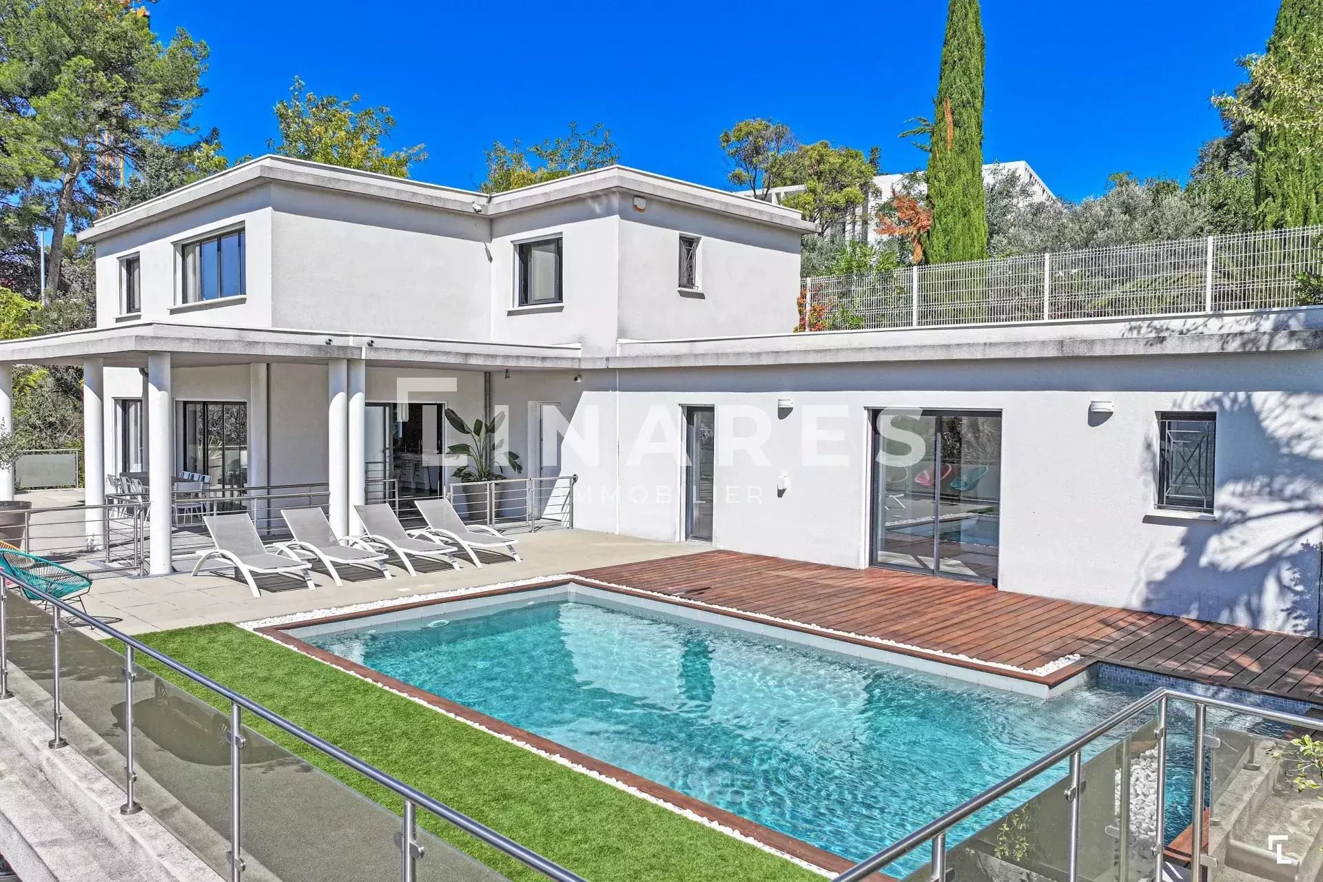 Llinares Gestion vous propose : Miami Vibes, une maison contemporaine T4 développant environ 192 m², offrant une vue panoramique dégagée sur les collines et la mer, complétée par une dépendance indépendante de 52 m². Dès l’entrée, vous découvrirez une magnifique pièce de vie baignée de lumière, composée d’une cuisine moderne, d’un espace salle à manger ouvert sur la terrasse et d’un double salon aux volumes généreux. Dans le prolongement, une suite parentale séduit par son double dressing et sa salle de bain ouverte, avec une vue directe sur la piscine. À l’étage, un bel espace ouvert, idéal pour un coin bureau, dessert deux chambres, chacune avec sa salle d’eau attenante, ainsi qu’un Wc indépendant. Côté extérieur, vous profiterez d’une grande terrasse d’environ 150 m² exposée plein sud, parfaite pour recevoir et se détendre au bord de la piscine, dans un environnement calme et privilégié. Atout rare : une dépendance de 52 m², idéale pour recevoir, créer un espace télétravail ou aménager un espace complémentaire selon vos besoins. Un garage d’environ 40 m² et trois places de stationnement couvertes complètent ce bien. Une maison de qualité, aux belles prestations, offrant un cadre de vie recherché à proximité des commodités. Cette construction de qualité avec des prestations haut de gamme ne vous laissera pas indifférent(e). Laissez vous charmer par ce petit havre de paix au calme et proche de toutes les commodités ! Contact Aude Mazzei : Attestation collaborateur Adc Rcp AU588640 Informations Loi Alur : - Honoraires locataire : 1918 € Ttc (hors état des lieux) / Code civil : 5 % du loyer annuel Ht/Hc (hors état des lieux) - Dépôt de garantie : 10 780 € - Surface (arrondie) : 192m² Classe énergie C et classe climat A • Montant moyen estimé des dépenses annuelles d’énergie pour un usage standard basés sur les prix de l’énergie de entre 1700 € et 2 350 € • Les informations sur les risques auxquels ce bien est exposé sont disponibles sur le site Géorisques : Llinares Gestion , le professionnel de la gestion locative à Marseille, vous accompagne avec expertise et proximité.