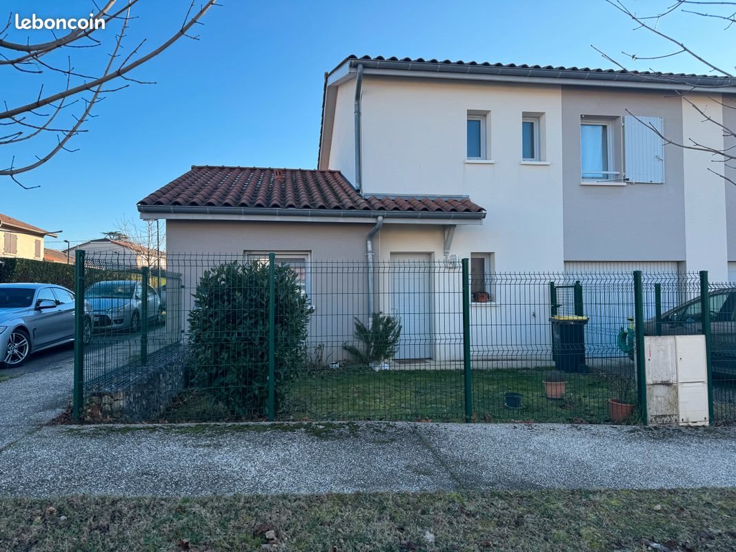 Maison récente dans une paisible petite copropriété de 6 maisons. La maison fait 100 m2 habitable sur deux niveaux avec un garage communicant de 30 m2, une petite terrasse devant à l'entrée et une autre derrière de 15 m2. Elle comprend 1 hall d'entrée qui communique directement avec un Wc, une buanderie avec accès direct au garage, l'escalier d'accès à l'étage et la cuisine ouverte sur une un grande pièce à vivre avec deux portes fenêtres. L'étage est aménagé de 3 chambres, 1 Wc et une salle de bain avec un lavabo, une douche et une baignoire. Exposition Nord/Sud. A 5 minutes de l'autoroute A46