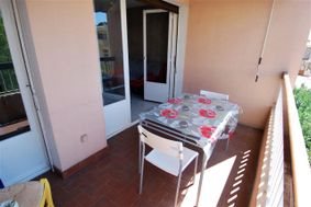 Bel appartement T2 dans résidence sécurisée. 3° étage avec ascenseur Cuisine américaine (plaque induction, hotte, four) séjour 22 m2 et chambre avec placard, les 2 donnant sur terrasse ouest Salle de bains (douche) avec placard WC Climatisation réversible, interphone, volet roulant électrique