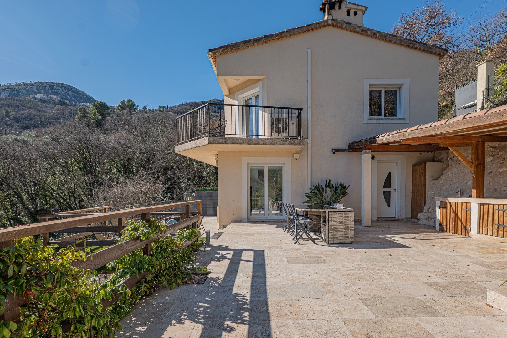 Idéalement située, venez découvrir cette agréable maison mitoyenne familiale implantée au Broc dans un secteur calme et résidentiel, et à seulement 10 minutes de la zone industrielle de Carros. Au rez-de-jardin, la maison se compose d'une spacieuse pièce de vie comprenant un salon et une salle à manger ouvrant sur une terrasse prolongée par un jardin, ainsi qu'une cuisine avec arrière-cuisine attenante. À l'étage, un palier avec un espace bureau qui dessert deux chambres bénéficiant d'un accès à un balcon, une salle de douche et un Wc indépendant. À l'extérieur, vous profiterez d'une grande terrasse avec espace cuisine d'été, d'un jardin de plus de 3 300m², d'une piscine hors-sol ainsi que d'une cave. L'ensemble bénéficie d'une magnifique vue dégagée sur la vallée du Var, sans vis-à-vis. Il est également possible se stationner trois véhicules sur la propriété.