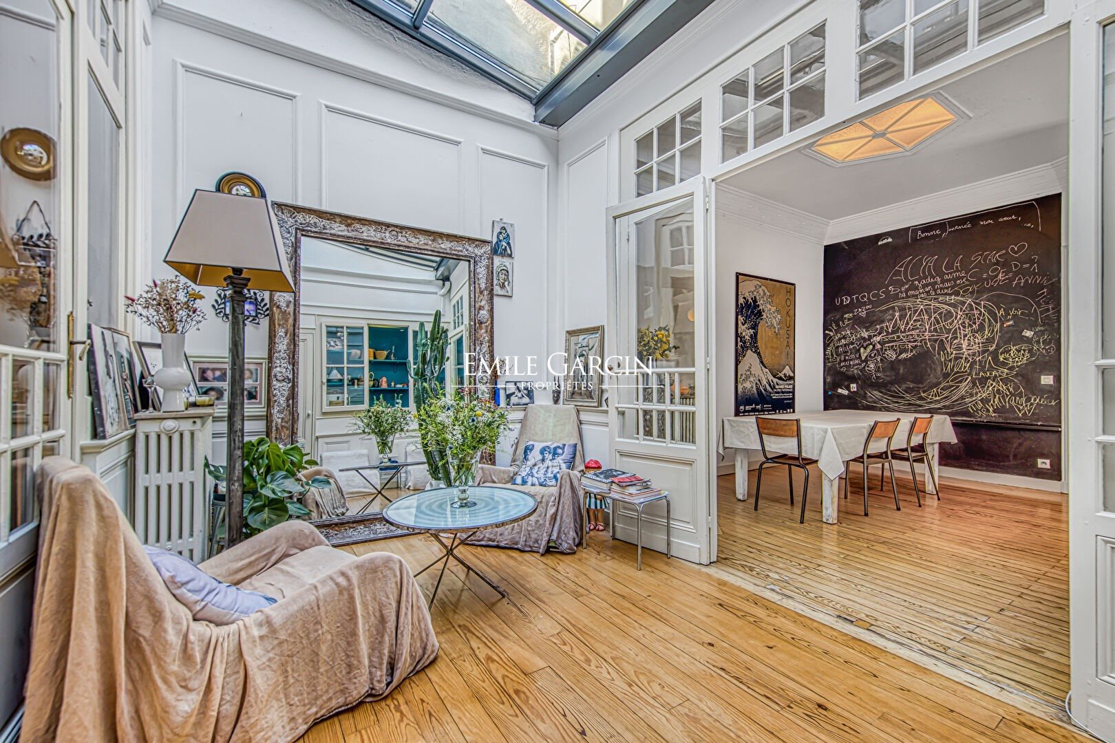 Au coeur du très recherché quartier des Chartrons, cette élégante maison familiale d'environ 250 m² séduit par son allure singulière, sa clarté et son identité affirmée. Derrière sa belle façade en pierre, elle dévoile un univers raffiné, empreint d'Art Déco (cheminée, escalier, rosaces..) sublimé par une décoration bohème chic où chaque objet, soigneusement chiné, révèle le goût et la personnalité des lieux. Dès le rez-de-chaussée, une belle entrée accueille avec élégance et structure la distribution de la maison. Au premier étage, les espaces de vie s'épanouissent dans une atmosphère chaleureuse. La cuisine, généreuse et résolument familiale, constitue le coeur de la maison, pensée pour se retrouver et partager. Elle se prolonge par une superbe véranda au plafond verrière, véritable cocon baigné de clarté, assurant un espace cosy et apaisant. Dans sa continuité, la salle à manger vient parfaire cet ensemble harmonieux, idéal pour recevoir en toute convivialité. Ce niveau accueille également trois chambres confortables, parfaitement adaptées à une vie de famille. Au deuxième étage, un magnifique salon se dévoile, dans le prolongement de l'esprit bohème chic de la maison, enrichi d'objets de goût et d'une atmosphère élégante et inspirante. Une cheminée vient sublimer ce lieu de vie. En continuité directe, une exceptionnelle terrasse de 70 m², véritable roof top, prolonge le salon et présente une pièce de vie à ciel ouvert, rare en coeur de ville, idéale pour des moments de détente ou de réception en toute intimité. Une suite parentale complète ce niveau, apportant confort et sérénité. Un grand garage pouvant accueillir deux véhicules ainsi qu'une salle de home cinéma complètent l'ensemble. Une propriété coup de coeur, à la personnalité forte, où élégance, et art de vivre se conjuguent harmonieusement, au centre de l'un des quartiers les plus prisés de Bordeaux.