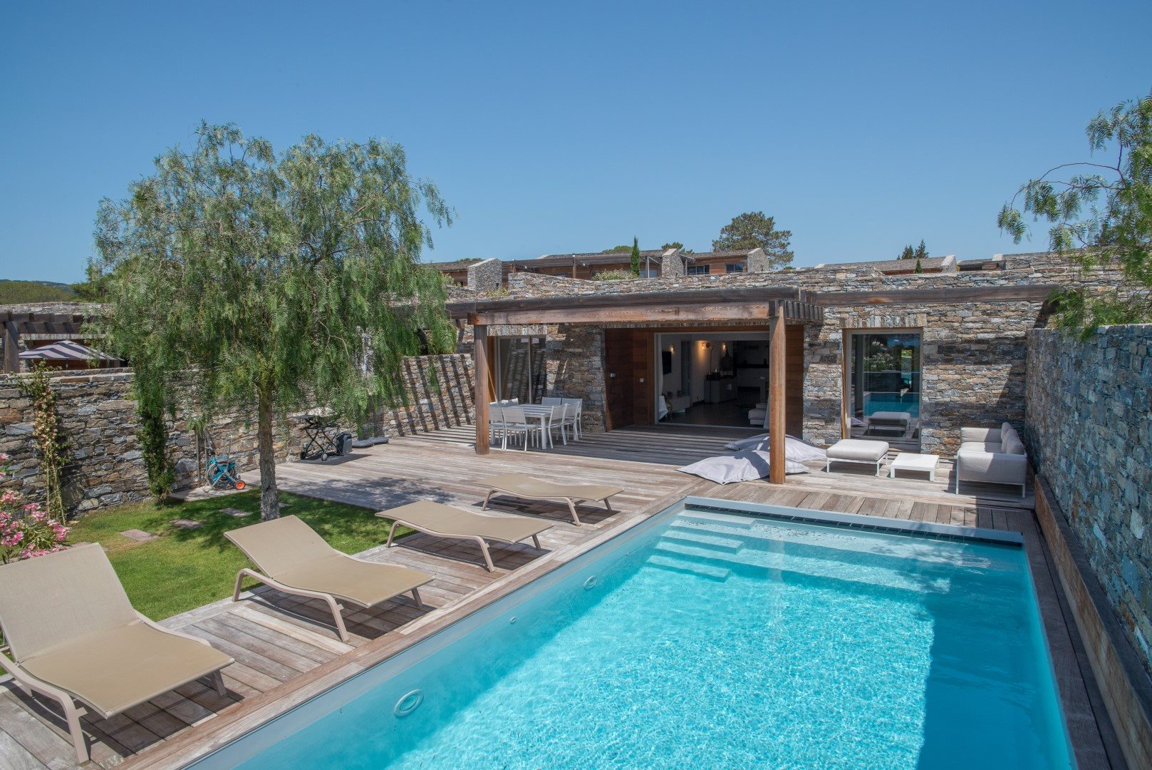 Référence Agence : Sgs-310 Disponibilités - Saison - 2026 - Du 4 avril au 30 mai - Du 27 juin au 4 juillet - Du 12 septembre au 30 octobre. Villa neuve contemporaine de plain-pied entièrement climatisée située dans un petit domaine privé à la situation exceptionnelle, « pieds dans l’eau » sur la plage de Santa-Giulia. La villa : entrée par un vaste salon-séjour s’ouvrant sur la terrasse et l’espace piscine, comprenant, salon avec canapés, T.V écran plat (Tnt), salle à manger, cuisine ouverte équipée et cellier. Une chambre avec Tv et salle d’eau avec WC. Une chambre avec salle d’eau. Ces 2 chambres ont un accès direct à la terrasse principale et la piscine par des baies vitrées. Et enfin, une chambre avec salle d’eau s’ouvrant sur un petit patio. Un Wc indépendant. Les extérieurs : grande terrasse aménagée avec transats, salon extérieur et salle à manger d’été (barbecue à gaz), piscine chauffée sécurisée par un volet roulant et douche extérieure.